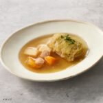 「捨てない」という価値観から生まれたスープおかずは、「うちのや製法」で素材の味と食感を残しつつ、美味しく飲み干せるよう工夫。長年の「常温おかず」の集大成として、試作を重ね完成しました。