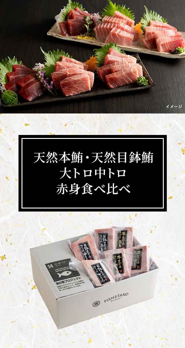 「天然本鮪・天然目鉢鮪 大トロ中トロ赤身食べ比べ(600g)」