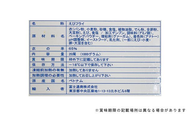 「5Lサイズ海老フライ」約1kg(約20尾)