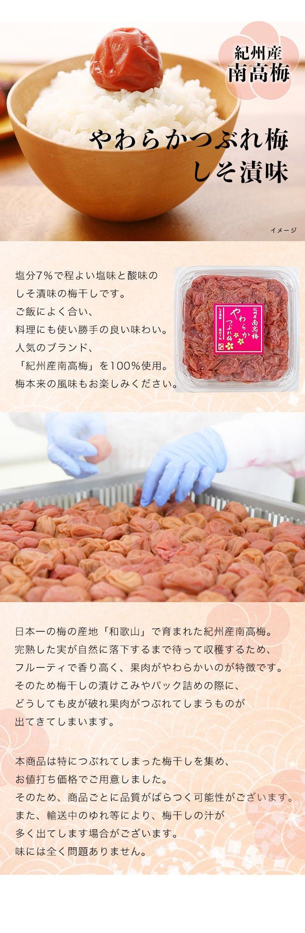 「紀州産南高梅 やわらかつぶれ梅 しそ漬味梅干し 塩分7%」600g×2個